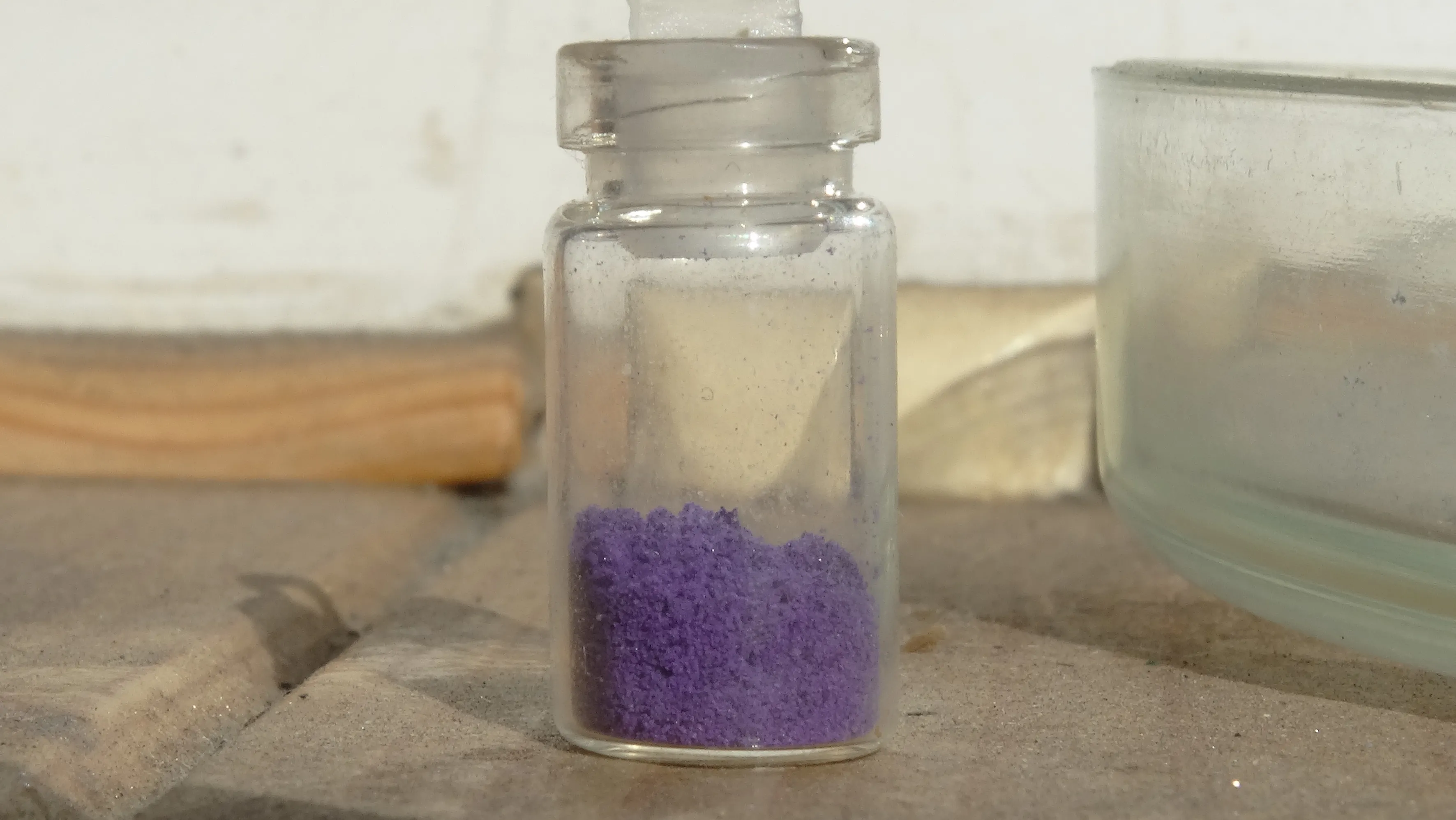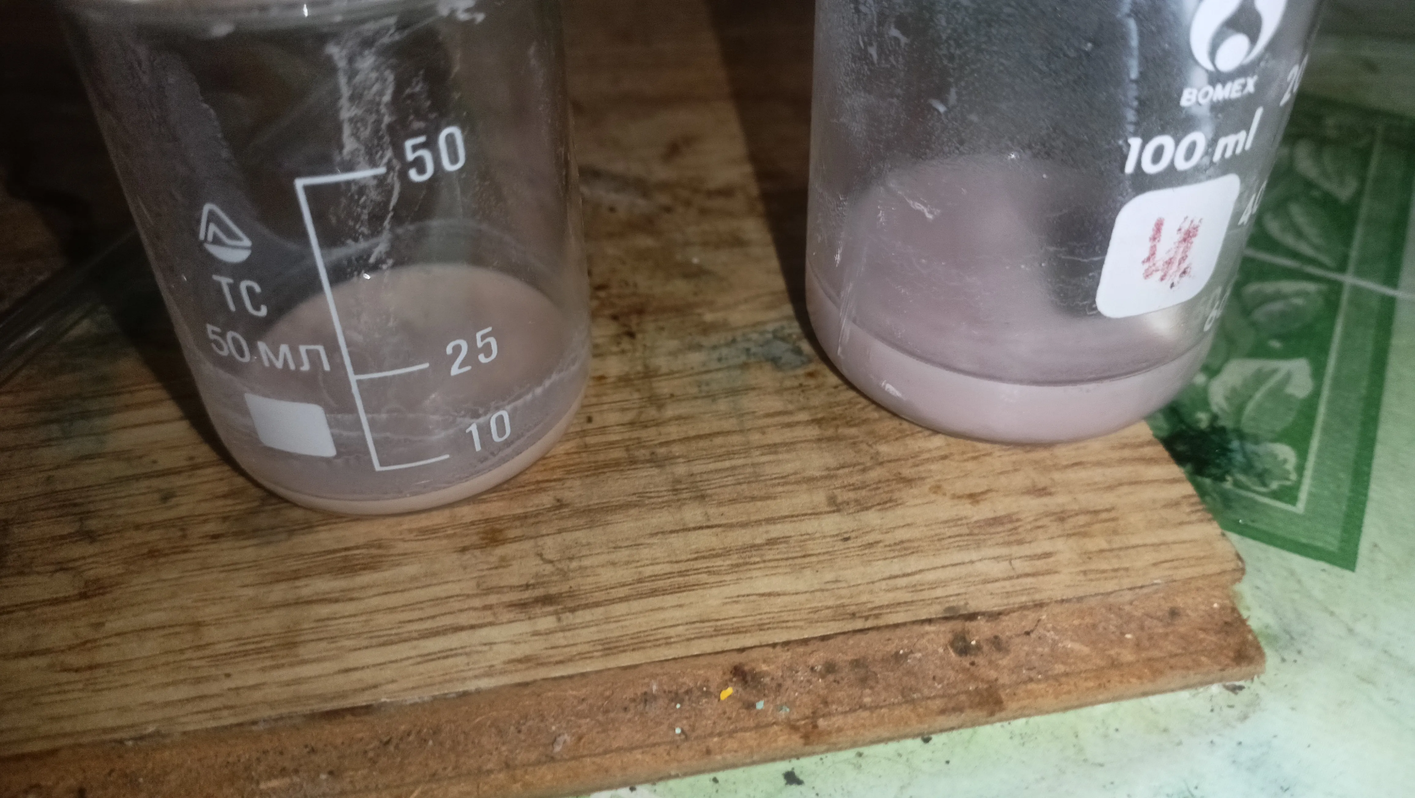 (!) important note: be sure to wash all glassware used thoroughly with an acid and distilled water beforehand to remove any possible source of contamination, handling here was done with plastic spoons instead of metal, as violuric acid forms brightly coloured salts that will stick out like a sore thumb in your final product.
